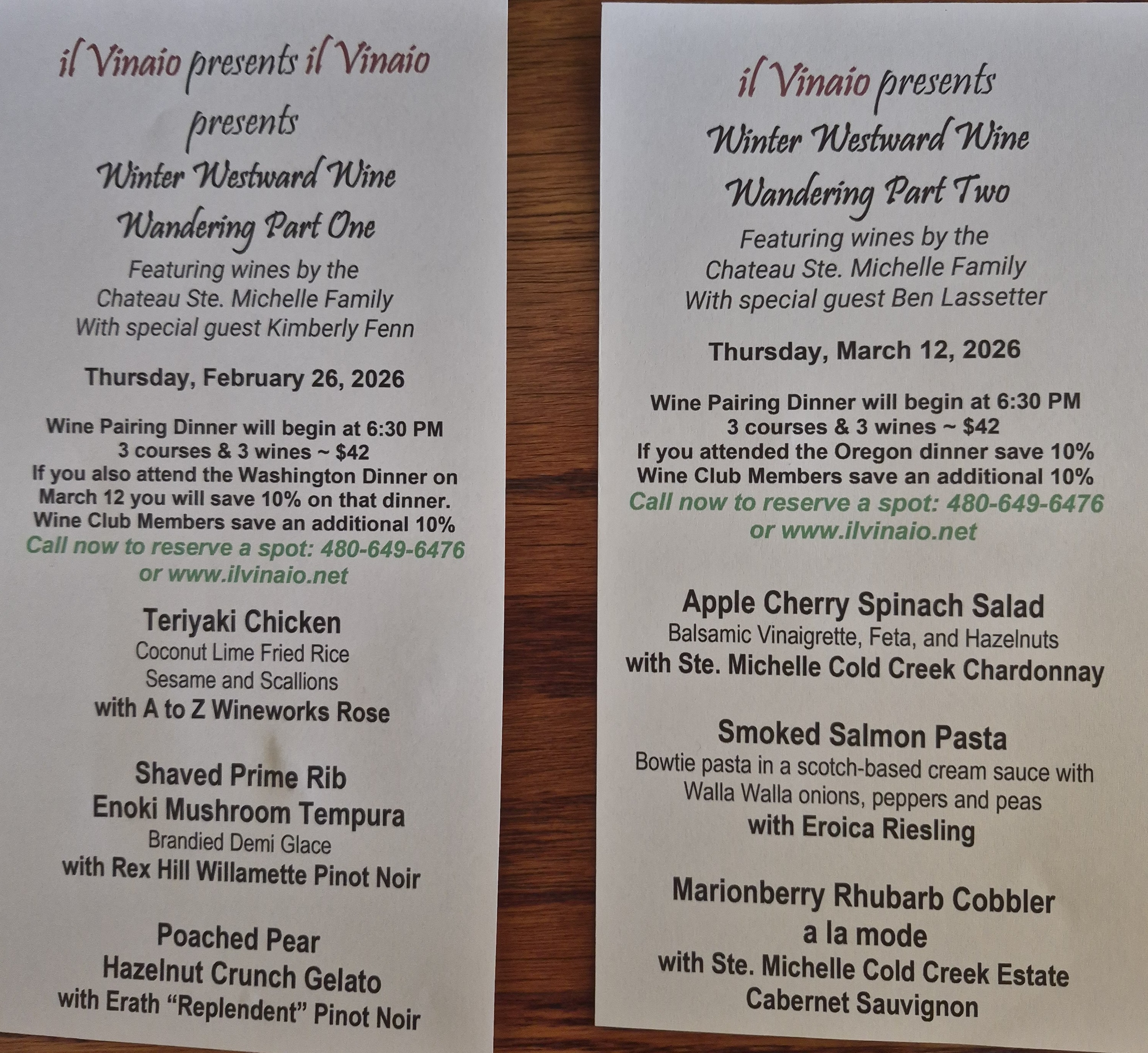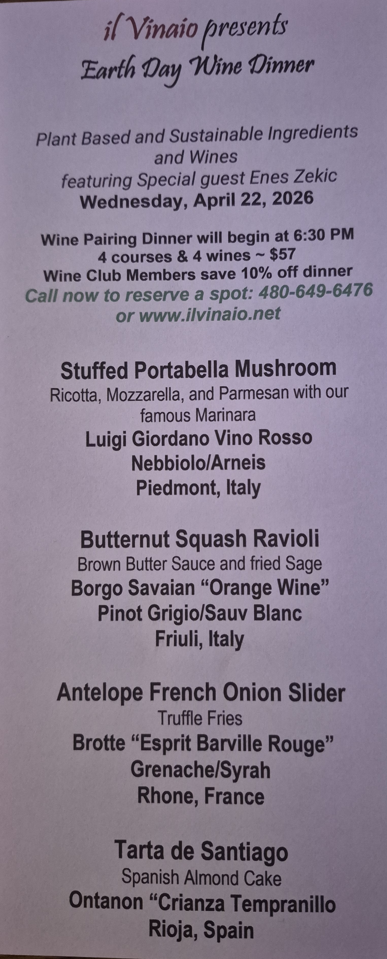 il Vinaio American Grill, the Wine Merchant is a unique, casually elegant restaurant & wine bar. Always family-owned and operated in the heart of Historic Downtown Mesa. We offer romantic booth-like sofa tables and a very intimate and quiet semi-private room. The best wine list in the valley, wine club, wine dinners, and wine tasting too! Always fresh, local and healthy ingredients. Gluten-Free and Vegan options galore.